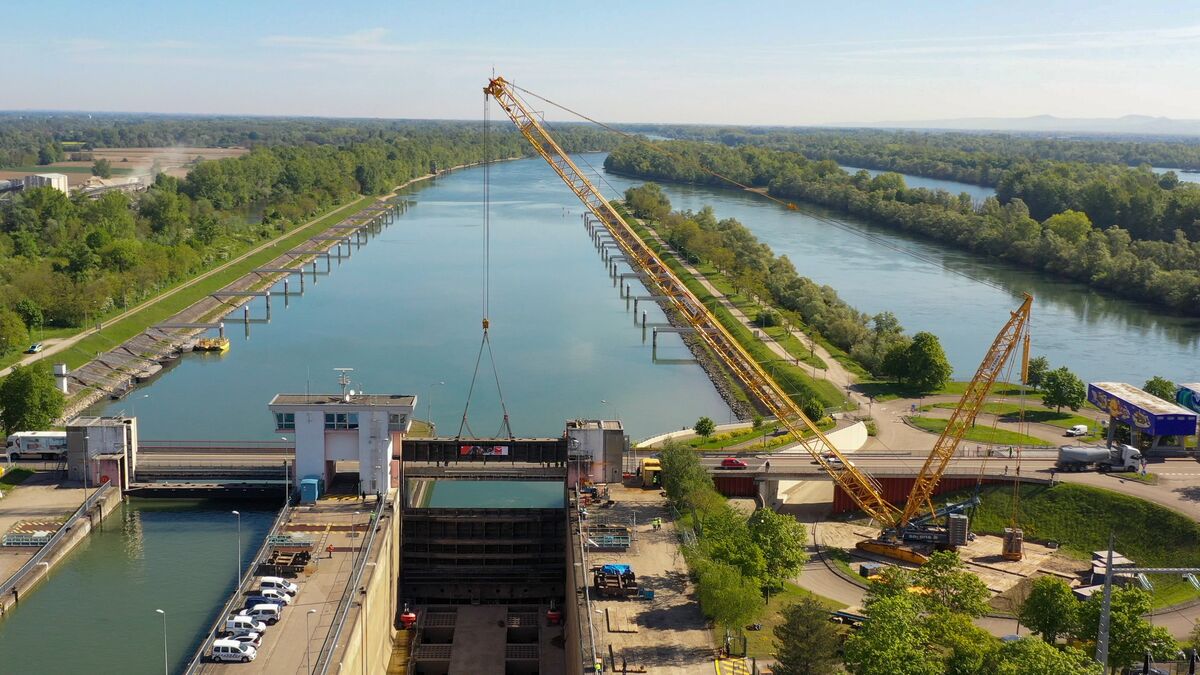 Opération de levage d’exception sur le site de l’écluse de Gambsheim